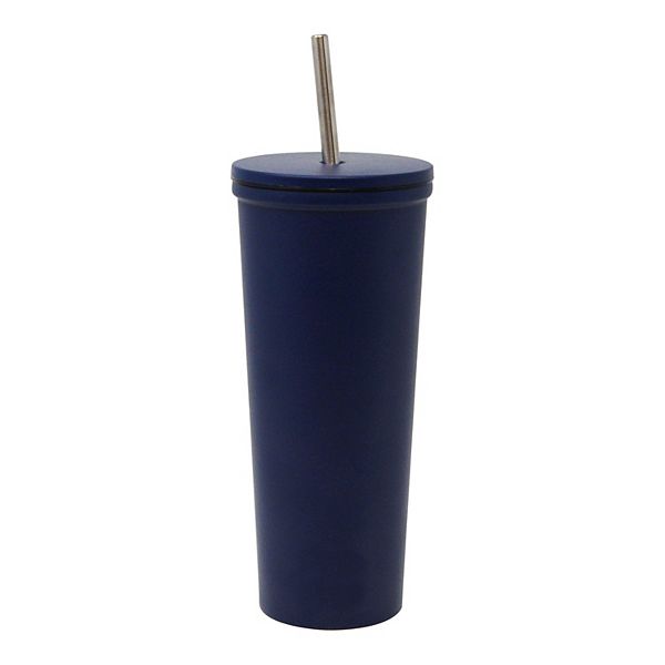 Wellness double wall stainless steel 24 oz tumbler with straw.